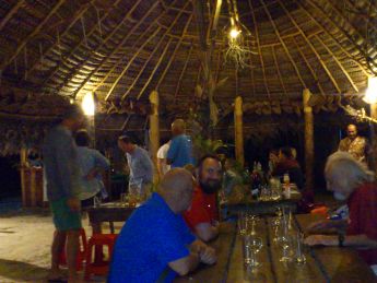 an eine Ankerboje fest und melden uns im Restaurant "Le Ficus" für das Abendessen an. Abends sind etwa zwanzig Gäste, Einheimische und Touristen, versammelt.