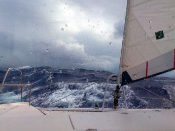 Es war schon den ganzen Tag sehr wechselhaft. Jetzt geht wieder ein kräftiger Regen nieder und der Wind ist stärker geworden. Wir suchen einen grösseren hellen Fleck