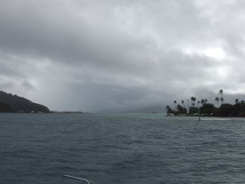 vorbei geht es durch den nächstgelegenen Pass auf der Ostseite raus auf den Pazifik. Dann nehmen wir Kurs auf die Südspitze von Moorea, leider genau gegenan zum