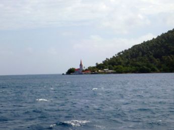 eine Kirche im dort üblichen Stil. Mechthild und Herbert schwimmen einige Runden im klaren Wasser der Lagune. Das Abendessen im Jachtklub schmeckt allen