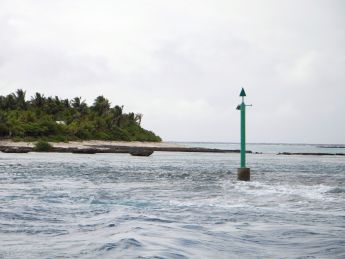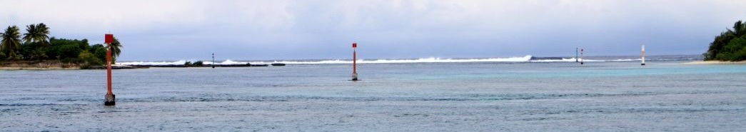 Teil der Lagune zurück ins tiefere Wasser. Dieser Teil der Lagune mit dem Pass ist so tief und geräumig, dass auch Kreuzfahrtschiffe und Containerfrachter
