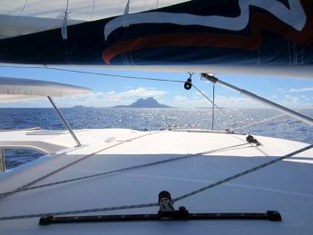 die Lagune und machen uns unter Motor auf den Weg nach Huahine. Die See ist kabbelig, Eckhard ist etwas seekrank, auf dem Trampolin geht's