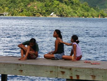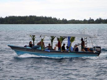 gelegentlich mit der Fähre von Bora Bora und dann sind da noch zwei oder drei Segelboote, wenn der Pass offen ist. Die Inselbewohner sind den Touristen
