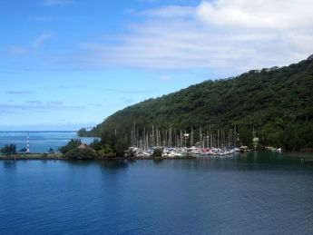 der Tuamotus, deren Wasser noch ein wenig wärmer ist als das in den Lagunen der Gesellschaftsinseln. Weiter geht es unter Motor an der Nordküste Raiateas zur Marina.