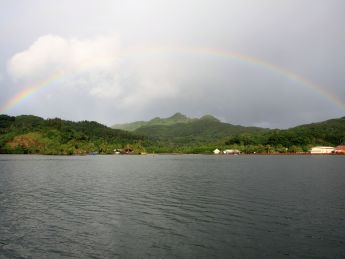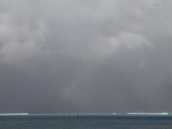 Heute, der letzte Tag unseres Törns, beginnt mit einem ordentlichen Regenguss und einem schönen Regenbogen. Den ersten Halt machen wir an einem Motu, auf dem Herbert