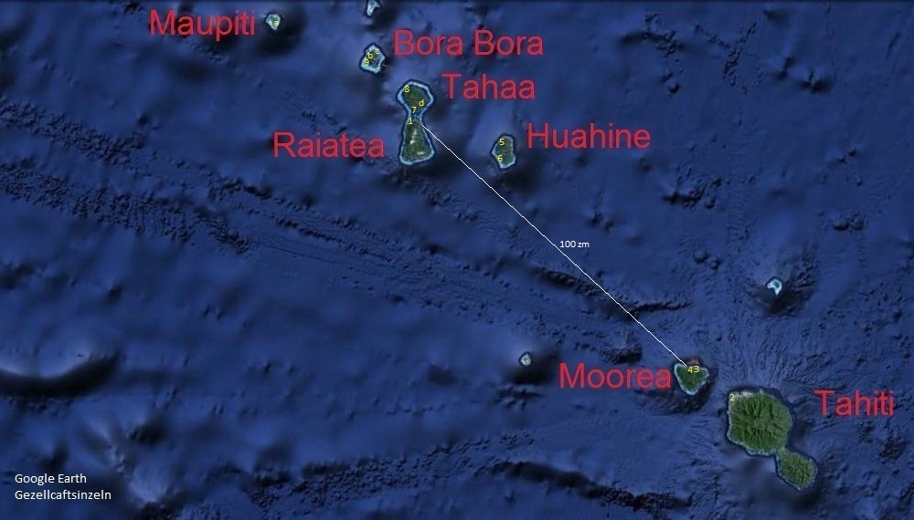 Die 'Iles sous le Vent' liegen von Moorea aus gesehen im vierten Quadranten. Die Sonne geht also im Nordwesten unter. Alles klar?