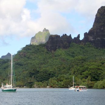 vieler Polynesier die schönste ihrer Inseln. Wir fahren an der Westküste entlang und, nachdem wir die Südspitze umrundet haben, sehen wieder etliche Schiffe. Durch den