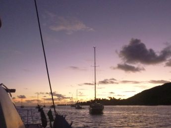 leichten Süd-Ost-Passat. Bei Sonnenuntergang verspeisen wir eine Portion Spagetti und legen die Wacheinteilung fest.