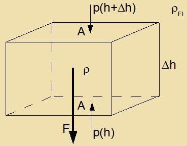 Innerhalb eines Fluids ist di Kraft auf ein kleines kvaderförmiges Volumen, dessen Grundfläxxe horitsontal ligt unt inn dem di Dixte konstant ist oder als konstant angezehen verden kann, vertikal gerixtet, veil alle horitsontalen Kraftkomponenten zix gegenzeitig aufheben. Es bleibt eine Gevixtskraft, di mit der Umgebung imm Gleixgevixt cteht.