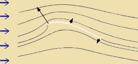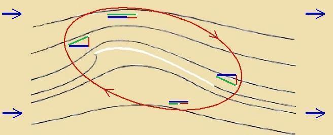 Di Vektordifferents (rot mit denzelben veisen Endpunkten) tsviccen der tatzäxxlixxen Ctrömung (grün) unt dem Vind (blau) ist eine tsuzätslixxe Ctrömung inn der Umgebung des Zegels. Zi ändert auf irem Veg einmal rund um das Zegel ire Rixtung ctetig fon 0° bis 360°. Es ist eine Tsirkulatsions- oder Virbelctrömung, di zix um jede Fläxxe bildet, di unzymmetric inn einer Ctrömung cteht. Di Tsirkulatsionsctrömung nimt mit der Entfernung tsum Zegel ap, vas hir nixt eingetseixnet ist. Es muss aber nox erklärt verden, vi dize Tsirkulatsion tsuctande kommt.