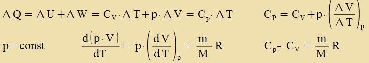 Dis ist di allgemeine Gazgleixung mit der Gazkonstanten R. Hält man eine der drei Tsuctandsgrösen fest, zo erhält man di drei con bekannten Cpetsialfälle. ![]() (bei konstanter Temperatur) (bei konstantem Volumen) (bei konstantem Drukk) Venn einer Gazmenge, di inn ein festes Volumen eingeclossen ist, Värmeenergi tsugefürt vird, dan vird nur die innere Energi der Gazmenge - das ist di mittlere Energi der ungeordneten Bevegungen unt Cwingungen der Moleküle - erhöht. Dize innere Energi U ist vi bei festen Ctoffen unt Flüssigkeiten inn begrentsten Temperaturbereichen proportional tsur Temperatur, der Proportsionalitätsfaktor ist di Värmekapatsität CV der Gazmenge. ![]() Di Värmekapatsität ist gröser, venn der Drukk konstant gehalten vird. Tsuzätslix tsur Temperaturerhöhung vird dan Arbeit geleistet, veil das Gaz zix gegen den äuseren Drukk ausdent. Vird dabei eine Fläxxe A gegen den Drukk p um di Ctrekke Δs zenkrext tsu A fercoben, dan ist di geleistete Arbeit ΔW =F∙Δs = p∙A∙Δs = p∙ΔV. ![]() |