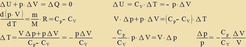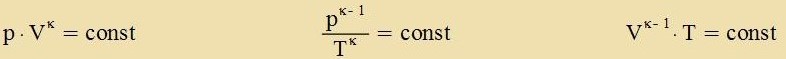 Adiabatic vird eine Tsuctandsänderung genannt, venn tsviccen der Gazmenge unt irer Umgebung kein Energiaustauc statfindet. Jetst zint tsvar alle drei Tsuctandsgrösen Drukk, Volumen unt Temperatur variabel, aber dox durx di Bedingung ΔQ=0 unt di allgemeine Gazgleixung zo an einander gebunden, dass Feränderungen eindeutig ferlaufen. ![]() Der Grenzübergang ergibt eine Differentsialgleixung erster Ordnung mit dem Adiabatenkoeffitsienten κ = Cp/CV ![]() Es gelten di adiabaticen Tsuctandsgleixungen