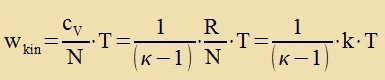 Unter der fereinfaxxenden Anname, cV∙T zei di gezamte kinetice Energi der N Moleküle eines Mols, folgt für di mittlere kinetice Energi eines Moleküls