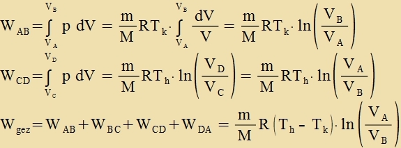Venn Kurven - Izoterme oder Adiabate - inn ein p-V-Diagramm getseixnet verden, ctellen di Fläxxen tsviccen der Kurve unt der V-Akse di beteiligten Energien dar. Pozitive Fläxxen, venn di Kurve fon links nax rexts durlaufen vird (Ekspanzion), bedeutet Arbeit, di fom Gaz geleistet vird. Bei Kompression, venn alzo eine Kurve fon rexts nax links durlaufen vird, ist di Fläxxe negativ, di Arbeit vird gegen das Gaz geleistet, di Energi inn das Gaz gectekkt. Bei einer Izotermen ist di Arbeit gleix der beteiligten Värme, da di innere Energi U nixt ferändert vird, bei einer Adiabaten ist di Arbeit gleix der Änderung der inneren Energi. Ein inn zix geclossener Kurventsug aus tsvei Adiabaten und tsvei Izotermen ctellt einen Carnotcen Kreizprotsesess dar, di imm Urtseigerzinn umclossene Fläxxe ist di insgezamt fom Gaz geleistete Arbeit Wgez.