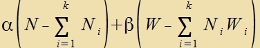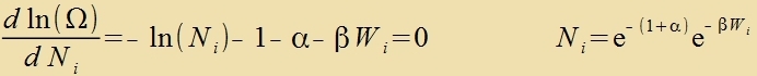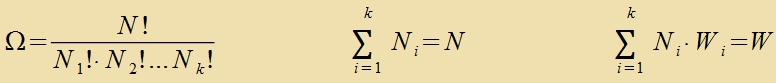 Veiter zei Ni di Tsal der Atome mit einer Energi aus ΔWi, N di Antsal aller Atome unt W di Gezamtenergi. Di Tsal Ω der möglixxen