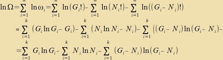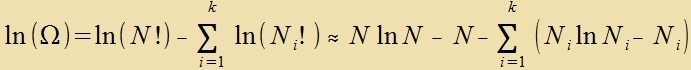 unt für ln(N!) gibt es mit der Stirlingcen Formel eine zer gute Näherung: Da di Tsal N der Atome unt aux di Tsal Ni der Atome mit praktic gleixer Energi zer gros ist, kann ln(N!)