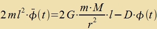 Θ=2m∙l2 ist das Trägheitsmoment der Hantel unt D das Direktsionsmoment des Torzionsfadens. Das Drehmoment, das auf di Hantel virkt, ist