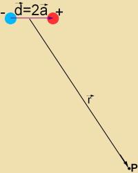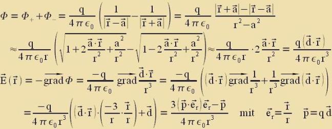 vird das Potentsial unt das Feld eines zümmetricen elektrischen Dipols mit dem Dipolmoment p=qd inn einer Entfernung berexnet, di gros gegen di Apmessungen des Dipols ist.