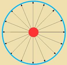 Kugelkondenzator Tsvei kontsentrice Metallkugeln zint mit entgegengezetst gleixen Ladungen geladen. Das elektrice Feld ist rotatsionszümmetric.