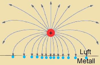 tsugevandte Oberfläxxe eines Leiters, värend di anderen Ladungen zix gleix ctark auf der entgegengezetsten Oberfläxxe zammeln. Haben dize di Möglixkeit aptsufliesen, dan bleibt der