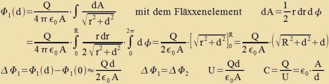 Tsviccenraum inn gleixer Rixtung virken, ist di Zumme der Potentsialuntercide der doppelte Vert. U=ΔΦ unt Q ergeben di Kapatsität C. |