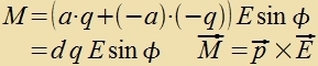 Inn einem homogenen elektricen Feld fercvindet di Zumme der Kräfte auf einen elektricen Dipol p=q∙d. Es virkt aber ein Drehmoment