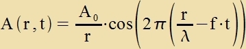 Vasservellen zint eine allgemein bekannte Erceinung. Misst man an einem festen Punkt imm Vasser di Tsal n der Vellenberge, di dort inn einer bectimmten Tseit forbei laufen, zo erhält man di Frekvents f=n/t der Velle. Misst man di Tseit t, di ein bectimmter Vellenberg brauxt, um eine Ctrekke l tsurük tsu legen, erhält man di Gecvindigkeit v=l/t der Velle. Der Apctand tsveier Vellenberge ist clislix di Vellenlänge λ. Ctat der Vellenberge kann man eben zo gut di Vellentäler ausmessen. Es gilt für jede Art fon Vellen der einfaxxe Tsuzammenhang ![]() Di Frekvents einer Velle vird durx ire Kvelle bectimmt, der Raum oder das Medium, inn dem di Velle zix ausbreitet, bectimmt di Gecvindigkeit der Velle. Inn jedem Punkt, durx den eine Velle läuft, cvingen tsvei Grösen um einen mittleren Vert. Dabei vekselt Energi tsviccen den beiden Grösen hin unt her. Bei elektromangneticen Vellen zint das das elektrice unt das mangnetices Feld, bei Callvellen inn Gazen di Dixte unt di Gecvindigkeit der Moleküle, bei Callvellen inn festen Ctoffen deren potentsielle unt kinetice Energi, ebenzo bei Vasservellen. Bei allen Vellen vird Energi inn der Rixtung der Gecvindigket v der Velle transportirt. Man unterceidet longitudinale unt transverzale Vellen je naxdem, op alle Cvingungen inn Rixtung fon v oder zenkrext tsu v ctatfinden. Vasservellen zint eine Miccform, bei der di Moleküle kreizförmig inn der Ebene cvingen, di fon der Vellengecvindigkeit v unt der Cverkraft aufgecpannt vird, Call ist eine longitunale Velle unt elektromangnetice Vellen zint transverzal. Transverzale Vellen können follctändig oder teilveize polarizirt zein, venn di Cvingung inn der Rixtung konctant bleibt oder venigstens nixt regellos zenkrext tsu v cvankt. Um eine Velle matematic dartsuctellen, muss man di Geometri der Kvelle unt der Begrentsungen kennen. Einfaxxe Modelle für Vellen one Begrentsung zint di Kugelvelle mit punktförmiger Kvelle unt di ebene Velle mit einer Ebene als Kvelle oder als tsveidimenzionale Velle di Kreizvelle unt di lineare Velle. Värend bei der Kugelvelle (unt Kreizvelle) di Amplitude mit tsunemender Entfernung fon der Kvelle apnimt, bleibt zi bei der ebenen Velle (unt linearen Velle) konstant.