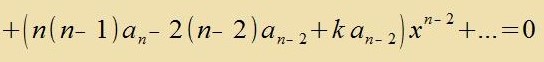 Aus der Differentsialgleixung (11) ist erkennbar, dass inn den Faktoren aller Potentsen fon x imm Nullpolünom (12) immer nur tsvei Koeffitsienten ai