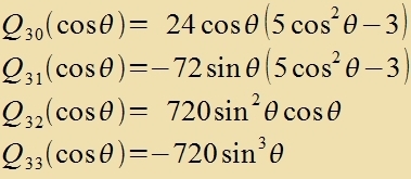 Nimt man imm Ergebnis di Zupstitutsion tsurük unt erzetst x vider durx cosθ, zo erhält man di folgenden Funktsionen Qlm(cosθ)