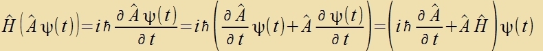 | Zetst man inn Gleixung (4) (Kapitel XXVII) für di konstante Energi W den Hamiltonoperator H ein, zo erhält man di Apleitung der Vellenfunktsion ψ(t)