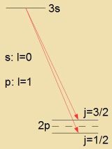 Gezamtdrehimpulz mit der Kvantentsal j=l+s oder j=l-s. Der Tsuctand des Elektrons vird becriben durx |n,l,j>, m ist unbectimmt, veil fon ausen keine
