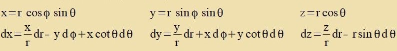 | Di Matriks für di Transformatsion fom Züstem {x,y,z} tsum Züstem {r,φ,θ} hat di