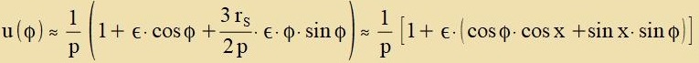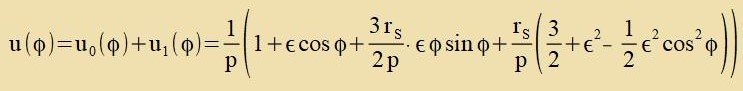 Um di Differentsialgleixung für u(φ) tsu lözen, vird der letste Zummand als Ctörung fon u0(φ) behandelt. Der Anzats ist: