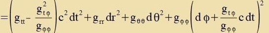 Imm Gegenzats tsur Schwartzschild-Metrik hat di Kerr-Metrik imm {t,r,θ,φ}-Züstem ein nixtfercvindendes