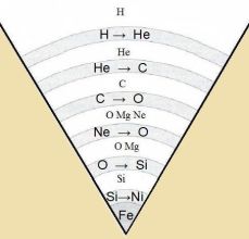 Durx di γ-Kvanten des kurtsvelligen Teils der ekstrem heisen Värmectralung verden di Eizenkerne inn Heliumkerne unt Neutronen tserlegt (Fotodesintegratsion: 56Fe+γ→13 ·4He+4n) unt dan aux veiter di Heliumkerne in Protonen und Neutronen (4He+γ→2p+2n). Protonen unt Elektronen fereinigen zix inn einer Umkerung des Neutronentserfalls tsu Neutronen (e+p→n+ν) unt zo ist aus einem grosen Teil des Eizens in venigen Sekunden ein kompakter Neutronenctern imm Tsentrum des ursprünglixxen Cterns enctanden. Dizer Neutronenctern vird durx den Fermidrukk zeines Neutronengazes ctabilizirt vird unt nimt vegen der geringen de-Broglie-Vellenlänge der Neutronen fil veniger Raum ein als vorher das Eizen. Enormen Mengen an Neutrinos dringen mit nahetsu Lixtgecvindigkeit ungehindert durx alle Cixten unt transportiren di freigezetste Energi inn den Veltraum. Inn den frei gevordenen Raum rund um den Neutronenctern ctürtst jetst das Material der umgebenden Cixten, prallt ap am harten Neutronenctern unt ctöst mit hoher Gecvindigkeit inn entgegengezetster Rixtung auf das kollabirendes Material aus höheren Cixten. Es entcteht eine Ctosvelle fon zolxer Dixte unt Temperatur, dass zi für di Neutrinos undurxdringlix vird. Unter Beteiligung dizer Neutrinos unt deren Energi fercmeltsen di Atomkerne inn endotermen Kernfuzionen unt es entctehen Elemente mit den höxsten Ordnungstsalen. Einige Ctunden nax dem Kollaps des tsentralen Eizenkerns erreixt di Ctosvelle di Oberfläxxe des Cterns unt fürt tsu dem beobaxteten Lixtausbruxx. Grose Teile des Cterns verden apgectosen, di Energi des radioaktiven Tserfalls dizes Materials regt zeine Atome nox lange Tseit tsum Leuxten an. Tsurük bleibt ein Neutronenctern. Nax der Zupernova fon 1604 dauerte es fast firhundert Jare bis 1987 vider eine Zupernova mit blosem Auge tsu zehen var, dismal am züdlixxen Himmel. Cpäter vurde der Ctern identifitsirt, dessen Kollaps tsu dizer Zupernova SN1987A fürte. Es var ein blauer Rizenctern fon etva 17 Zonnenmassen unt einem Alter fon 25 Millionen Jaren inn der Grosen Magellancen Volke, der näxstgelegenen Tsverggalaksi. Das erste Zingnal fon dizer Cterneksplozion var eine Gruppe fon rund tsvei Dutsend Neutrinos, di innerhalb fon veniger als tsvantsig Sekunden fon einigen Detektoren auf der Erde registrirt vurden. Erst drei Ctunden cpäter erreixte das Lixt fon der Oberfläxxe des Cterns di Erde unt mit der Beobaxtung der apgectosenen Hülle gevinnt di Astronomi ctändig veitere Informatsionen. Dize unt file andere Beobaxtungen ctütsen das Bild, das di Astrofüzik fon einem kollabirende Ctern entvirft. Als Überbleibsel vird ein Neutronenctern fermutet, der jedox dreisig Jaren lang unentdekkt blib. Erst zeit 2019 gibt es aus Beobaxtungen erste Hinveize für einen Neutronenctern an der Ctelle des eksplodirten Forgängercterns. Veil Röntgenctralung di Atmosfäre nixt durxdringt, vurde 1962 unter der Leitung fon R. Giacconi ein Röntgendetektor mit einer Rakete tsum Einzats oberhalb der Atmosfäre gebraxt. Di ervartete Ctralung fon der Mondoberfläxxe vurde nixt gefunnden, ctatdessen aber eine kräftige Röntgenkvelle imm Cternbild Skorpion. 1967 analüzirte I. S. Shklovsky das Cpektrum dizer Kvelle Scorpius X-1 unt stellt fest, dass di Ctralung aus einer dünnen Plasmacixt ctammt, di etwa 100 km breit unt 5⋅107 K heis ist, imm inneren Teil zogar 5⋅108 K bei einer Breite fon 10 km. Aus dizen Ergebnissen folgerte er, dass di Kvelle eine Akkretsionsceibe um einen Neutronenctern inn einem Doppelcternzüstem ist unt Materie fon dem nahen Begleiter akkretirt vird. Es ist der erste aus astronomicer Beobaxtung gevonnene Hinveis auf einen Neutronenctern nox for der ersten Entdekkung eines Pulzars. Immer vider ctürtsen Plasmamengen aus der Akkretsionsceibe mit Gecvindigkeiten fon mer als 108m/s auf di Oberfläxxe des Neutronencterns. Das ekstrem ctarke Mangnetfeld lenkt das ionizirte Material inn einer Cpirale, di zix auf venige Kilometer ferengt, auf eine entcprexxend kleine Fläxxe bei den Mangnetpolen, di durx di auftreffende Energidixte auf 108 K aufgeheitst vird. Es entcteht eine Ctralungskeule fornemlix fon Röntgenctralung, deren Drukk den Einfall von Material begrentst (Eddingtongrentse). Es gibt immer tsvei einander gegenüberligende Ctellen, an denen zolxe Ctralungskeulen entctehen. Durx den Einzats fon Raketen tsur Beförderung fon Röntgenteleskopen inn den Raum auserhalb der Erdatmosfäre hat zix di Röntgenastronomi ctürmic veiterentvikkelt, heute ist di Forcung mit Röntgenteleskopen ein vixtiges Teilgebit der Astronomi. Für astronomice Beobaxtungen imm Rötgenbereix vurde 1999 das Röntgenteleskop Chandra als Zatellit auf eine ctark ekstsentricen Umlaufban mit einem Apogäum fon rund 130000 km gebraxt. Unter anderem bitet es beste Möglixkeiten tsur Beobaxtung fon Röntgenkvellen inn Akkretsionsceiben fon Doppelcternen.