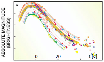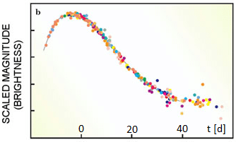 Inn den ersten Tagen nax Beginn der Eksplozion ist di Eksplozionsvolke zo dixt, dass di Fotonen darin gefangen bleiben. Inn den Cpektren des ersten zixtbaren Lixtes zint keine Apzorptsionslinien fon Vasserctoff oder Helium tsu finden, zondern di fon Kolenctoff unt Zauerctoff. Da Tsuzammenzetsung unt Masse des Veisen Tsverges imm Moment der Eksplozion bekannt zint unt ebenzo di Fuzions- unt Tserfallsprotsesse, kann dize termanukleare Eksplozion modellirt verden. Als Ergebnis erhält man Lixtkurve unt Cpektren in Übereinctimmung mit den Beobaxtungen unt inbezondere di immer gleixe Leuxtkraft.